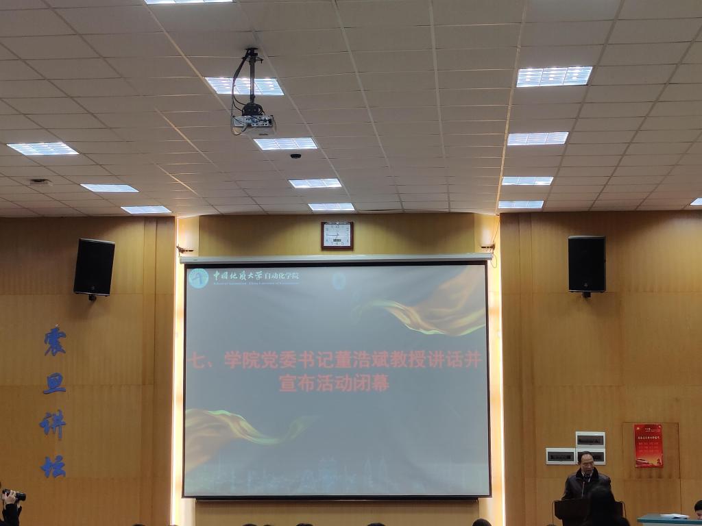 大会最后一项,学院党委书记董浩斌教授讲话并宣布活动闭幕。董浩斌教授认为走进自动化系列活动建立了学科认知,将理论与实践结合,是永利集团3044官网欢迎您实践、创新、国际化人才培养理念最好的体现,希望同学们通过此次活动可以树立科学成才的观念,坚持以德为先,能力为重,全面发展,为成为国家栋梁之材而努力奋斗。最后,在2021年元旦即将到来之际,董浩斌教授祝全体师生工作顺利、学习进步,并宣布首届“走进自动化”活动闭幕。