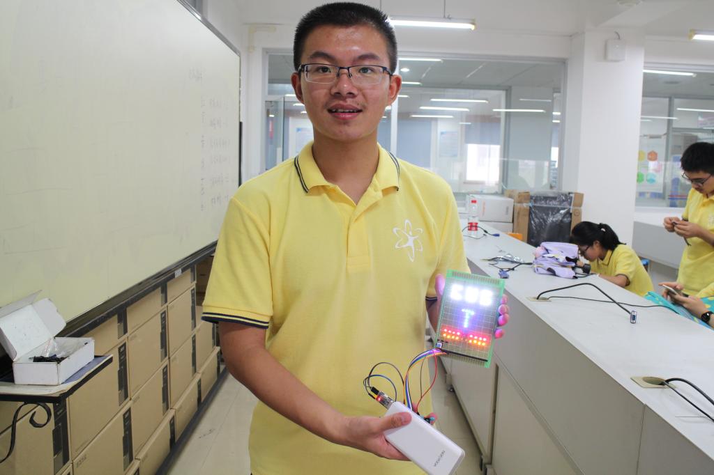 终于到了动手实践的时候,营员们摩拳擦掌都想做出有意义并且美观的作品。在刚刚接触焊接的时候营员们都表现的有些紧张,但是随着时间的推移,大家都开始变得熟练了起来,一颗颗的LED灯,一个个精密的原件在营员的手中慢慢的变得井然有序。第一个流水灯在实验室里亮起时,同学们爆发出喜悦的欢呼。最后大家都顺利完成了自己的作品,这极大地激发起同学们学习的兴趣,在未来去寻觅更深层次的秘密。