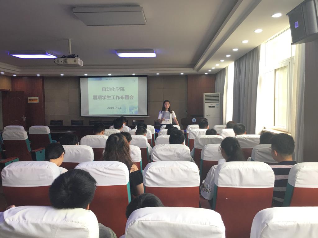 7月11日,永利官网2019年暑期学生工作布置会在信息楼310报告厅召开。党委副书记何建新,辅导员许彦、刘一荻出席会议,许彦主持会议。