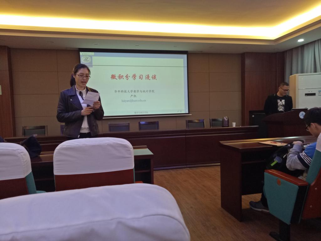 (通讯员 余博威)2018年4月15日晚,永利官网“微积分学习漫谈”讲座在信息楼310报告厅顺利举行,讲座邀请华中科技大学数学与统计学院严凯老师主讲,朱媛老师主持讲座。