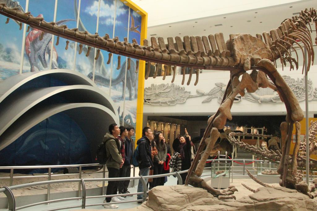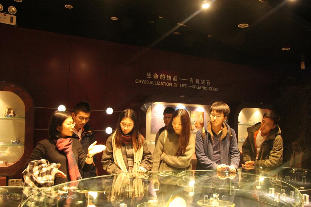 谭老师首先带领中山大学师生们参观了永利官网逸夫博物馆。在讲解员的热情讲解下,师生们对馆中的资料、化石以及珠宝藏品等十分赞叹,积极向讲解员提问交流,展现出了浓厚的兴趣,也体会到了永利官网师生艰苦朴素、求真务实的精神。