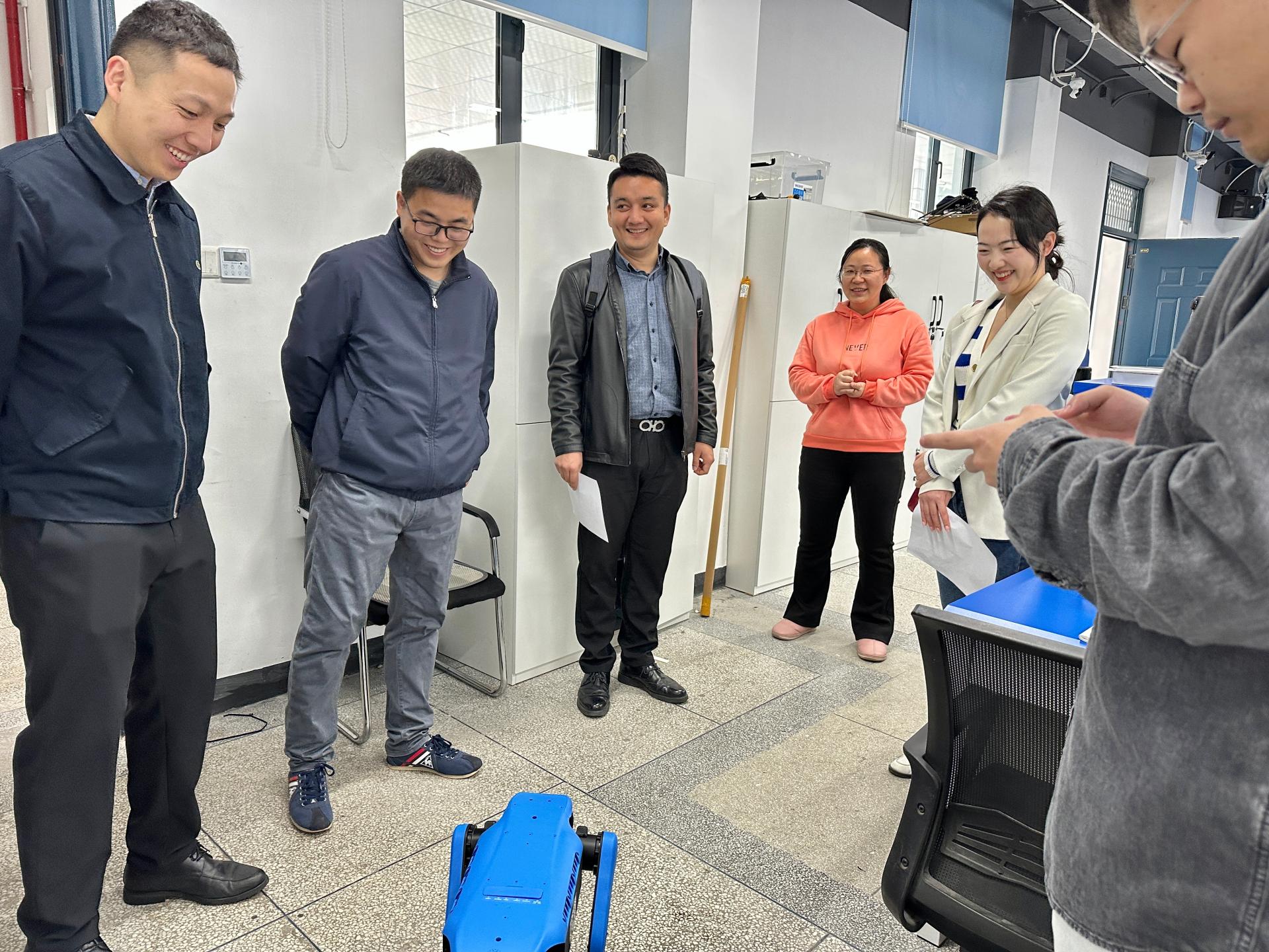 交流会前,李少杰一行参观了学院依托教三楼建设的创新创业分基地,走访了机器人创新实验室、青创空间等场域,王向东对分基地建设背景、运营概况及未来规划做了详细的介绍。学院依托湖北电工电子实验教学示范中心、湖北省计算机实验教学示范中心、湖北省大学生电子信息科技创新基地,以教三楼602室空间作为依托以期建成集实验教学、科技创新、双创实践多功能为一体的“一站式”场域。期间,侏罗纪电子协会指导老师赵娟对机器人创新实验室作了介绍,协会会长刘虹良现场演示了同学们参加中国大学生计算机设计大赛智能挑战赛的作品