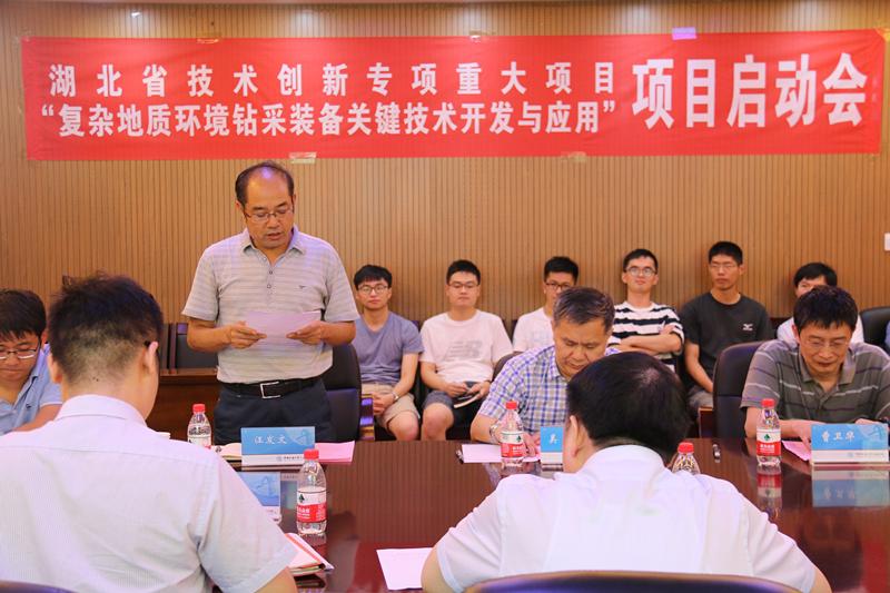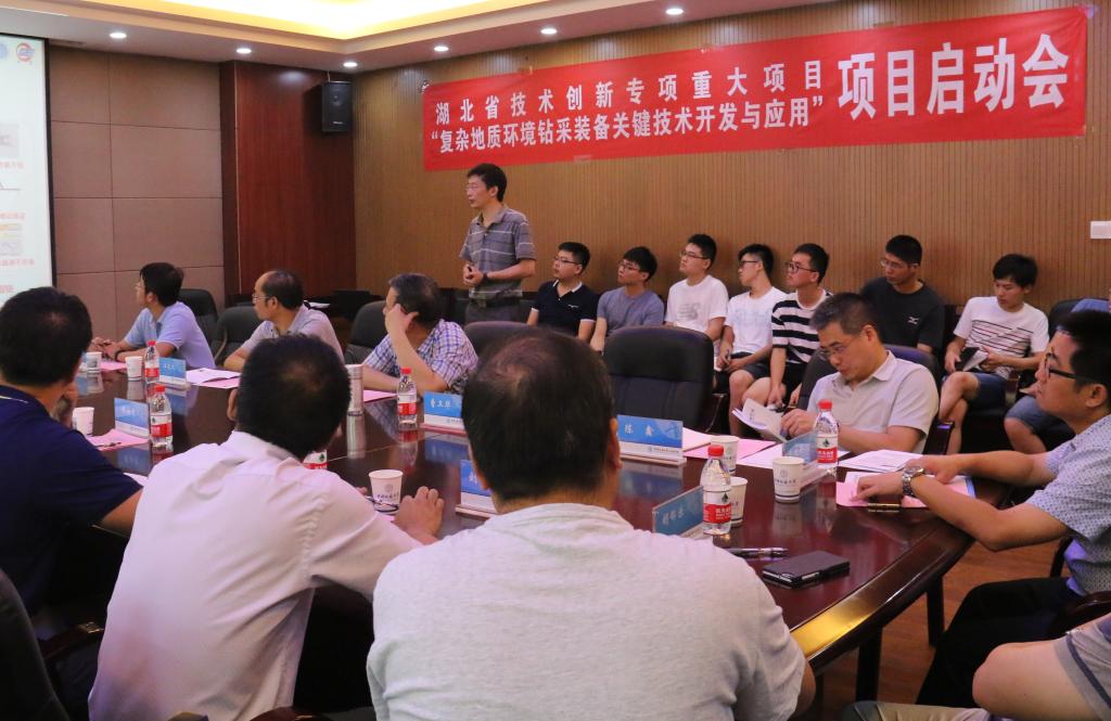 2018年713日,湖北省技术创新专项重大项目“复杂地质环境钻采装备关键技术开发与应用”项目启动,永利官网曹卫华教授作为技术负责人汇报了该项目的实施方案。湖北省科技厅高新处、湖北省地质局科技处、湖北省城市地质工程院、永利集团3044官网欢迎您、中国地质装备集团有限公司等相关单位的领导、负责人及项目组其他成员参了会议。