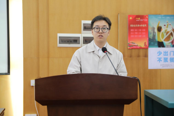 2023级研究生代表郭廷瑞同学发言,分享了“转变思维,自主学习、珍惜资源,锐意进取、知行合一,勇于实践”三点感悟与新生共勉,并号召同学们珍惜时间、把握机会、勇于创新、敢于实践。