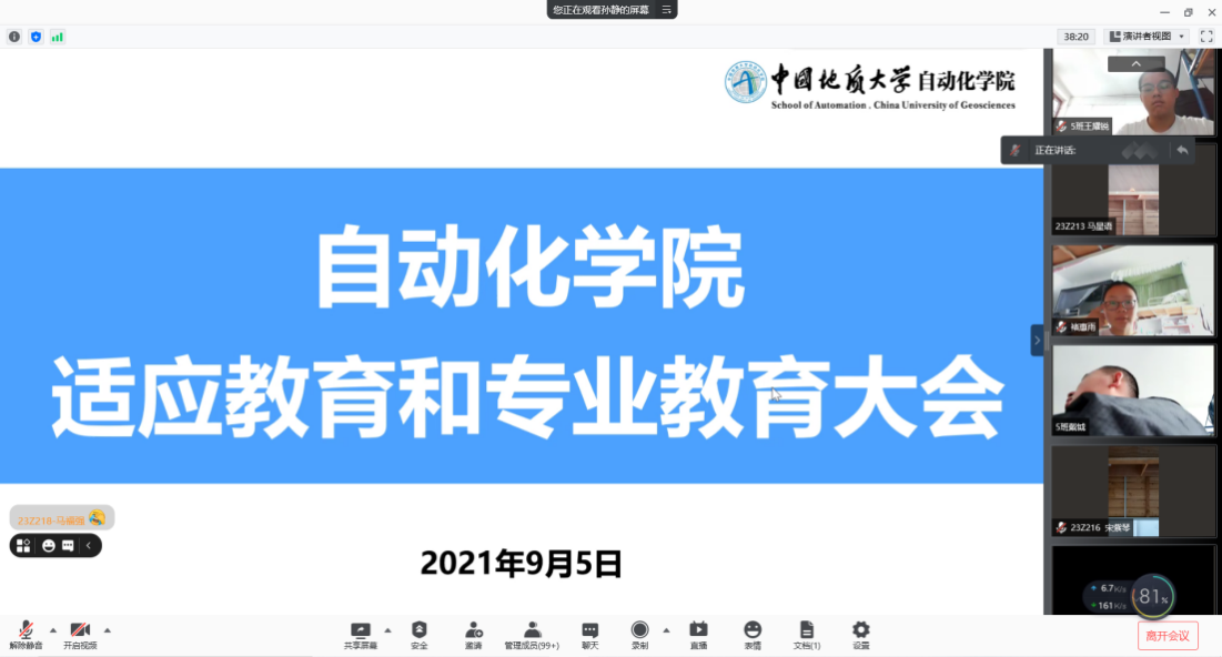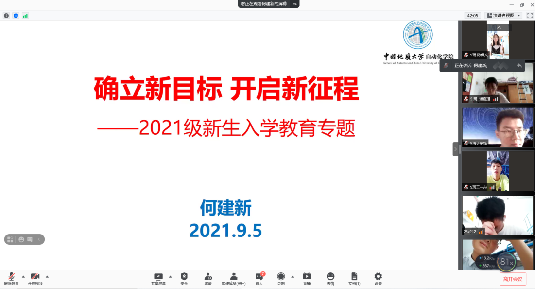 2021年9月5日上午9点,永利集团3044官网欢迎您召开2021级新生线上适应教育和专业教育主题大会。学院党委副书记何建新老师、自动控制系系主任安剑奇老师、教务王老师参加此次主题教育大会,会议由辅导员孙静老师主持。学院召开此次教育大会旨在让2021级新生尽快完成从高中生到大学生的身份转变,了解大学生活和学院专业设置及课程安排,更好地适应大学生活。