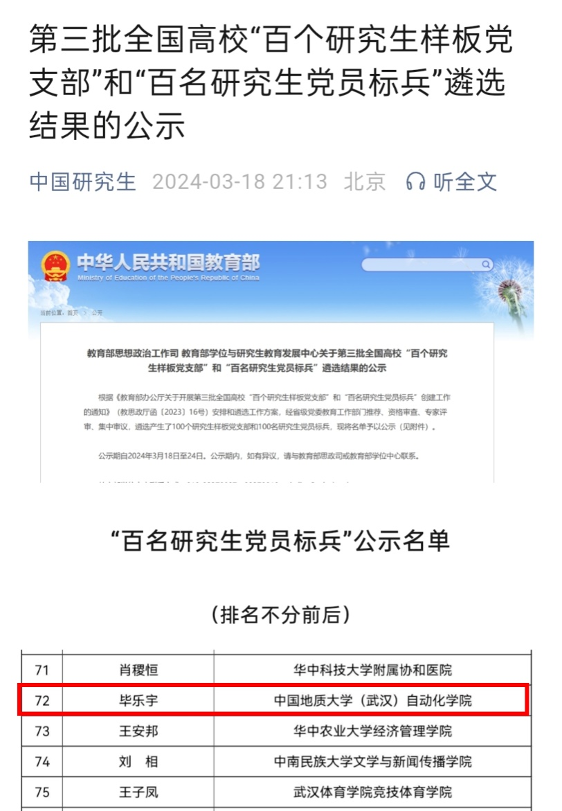 全国标兵 | 永利集团3044官网欢迎您博士生毕乐宇入选第三批全国高校“百名研究生党员标兵”创建名单