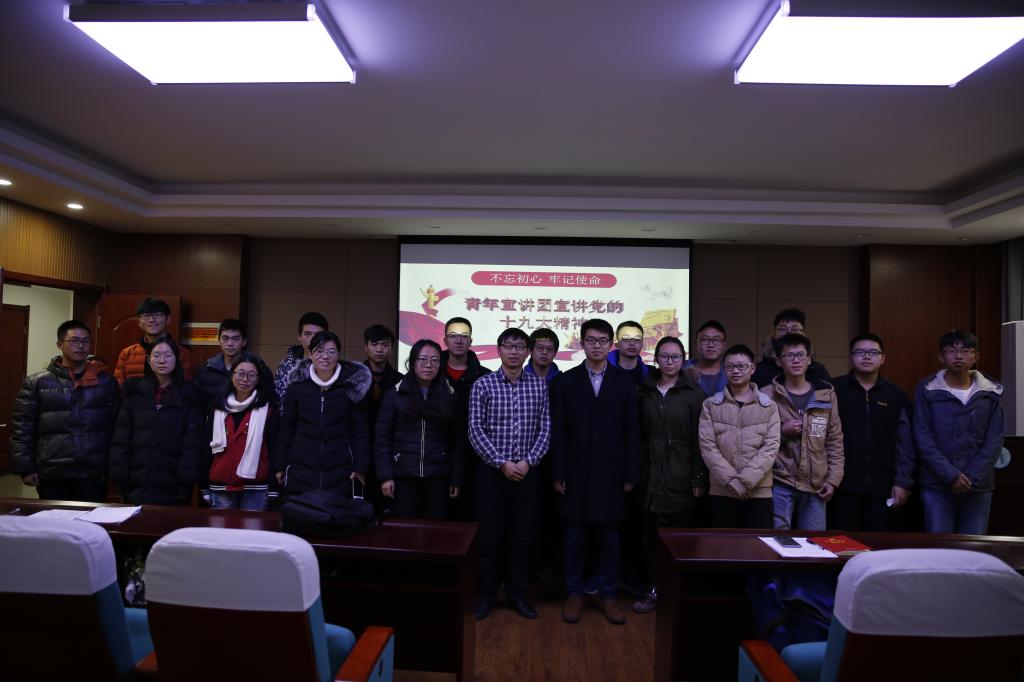 2017年12月20日晚7点,永利集团3044官网欢迎您在310报告厅举办党的十九大精神宣讲会。校团委党的十九大精神宣讲团成员霍少孟老师、院团委书记谭文伦老师共同出席了此次大会。永利官网团委组织部成员以及来自2015级、2016级、2017级的共一百多名团员青年参加了学习。