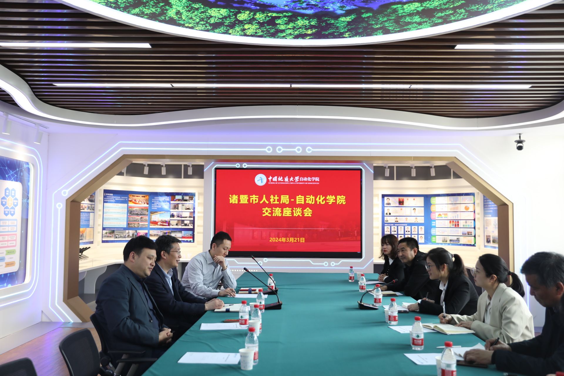 曹院长对杨丹堃局长一行的到来表示欢迎,并介绍学校的学科建设发展以及毕业生就业情况。他表示,诸暨作为百强县排名靠前的小镇,拥有一定的经济实力以及较为完善的人才政策,期待今后能在“政、产、学、研”等方面开展合作。