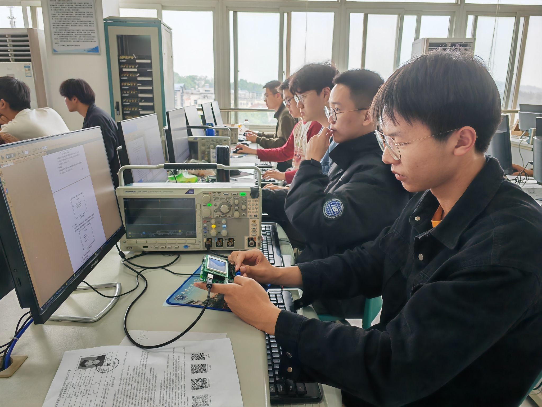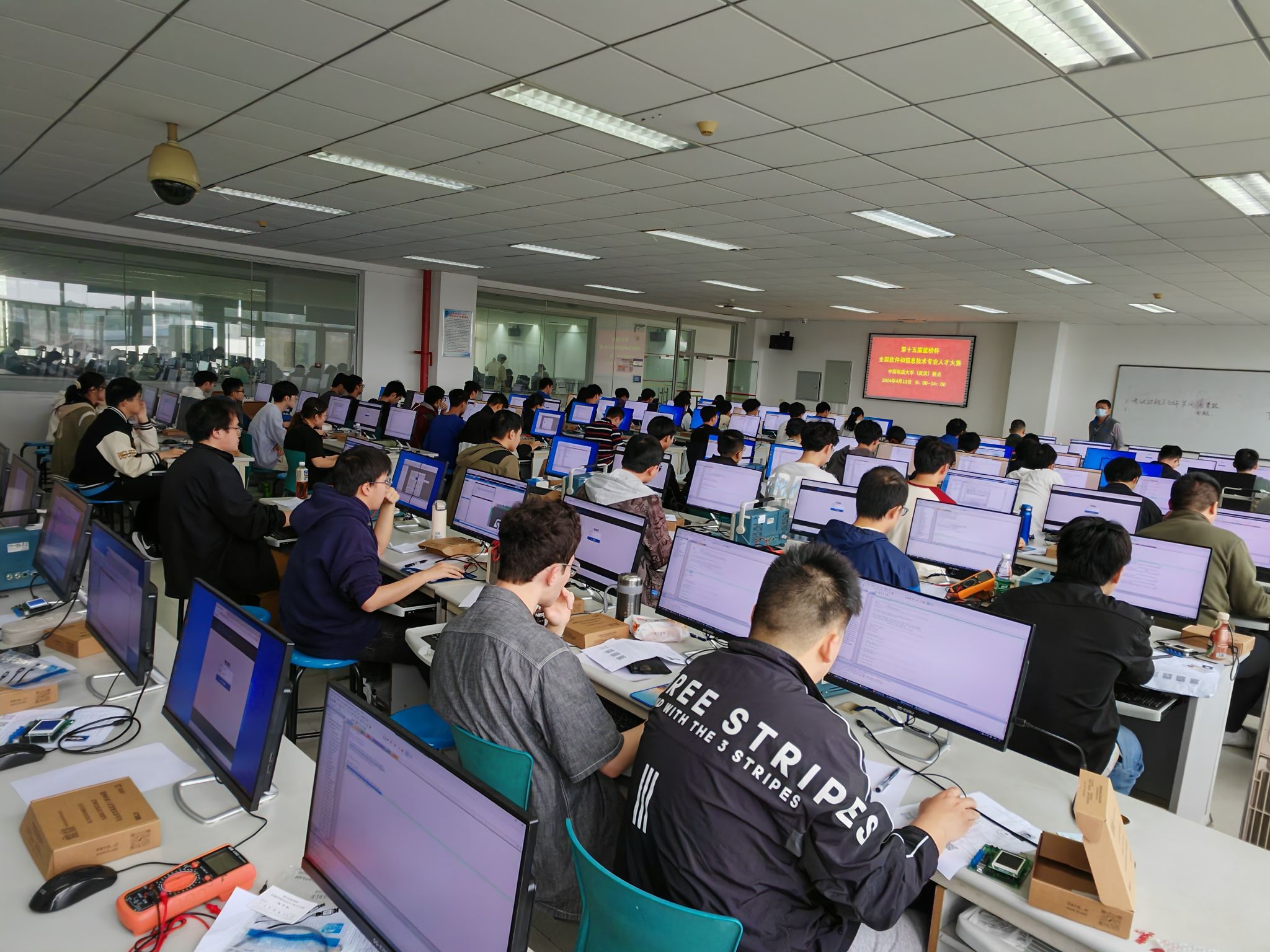 比赛历时五小时,采取单人单座的形式进行。在比赛期间,参赛选手全神贯注地投入到答题中,通过计算演算、程序设计、代码编写、PCB设计等方式完成比赛题目。工作小组的老师严格维护考场秩序,确保每一位考生都能在良好的环境中专心作答。比赛结束后,工作小组将相关赛务资料整理并上传至大赛组委会指定网盘。至此,永利官网承办的第十五届蓝桥杯全国软件和信息技术专业人才大赛湖北省电子赛赛点工作圆满完成。