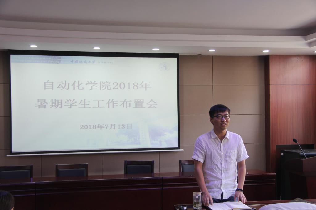 2018年7月13日,永利集团3044官网欢迎您2018年暑期学生工作布置会在信息楼310报告厅召开。党委副书记何建新,团委书记谭文伦,辅导员许彦、刘一荻出席会议,许彦老师主持会议。